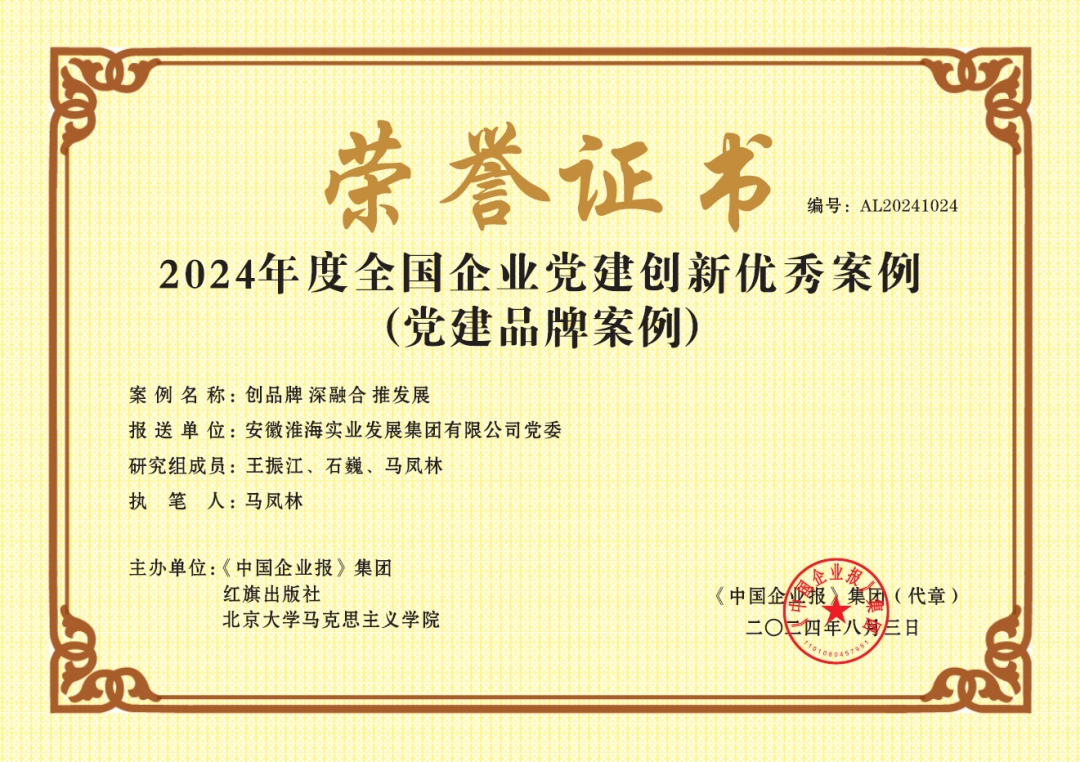 日前,2024全國企業(yè)黨建(案例)研討會暨第四屆企業(yè)黨建創(chuàng)新優(yōu)秀案例發(fā)布儀式在北京成功舉辦。淮海實業(yè)集團“創(chuàng)品牌 深融合 推發(fā)展”品牌案例,榮獲年度優(yōu)秀黨建品牌案例。