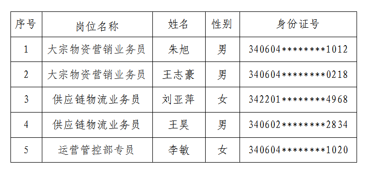 安徽淮?,F代物流有限責任公司公開招聘考察人選名單公告