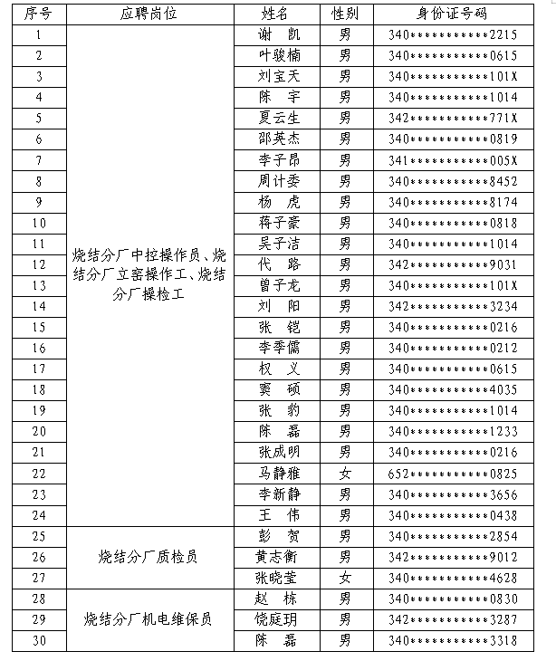 安徽淮海新材料有限責任公司技能人才招聘面試工作已結束,現將考察人選名單公告如下: