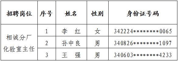 根據相山水泥公司相誠分廠化驗室主任招聘公告中規定的條件,對5月21日17:30前報名人員進行了資格審查,