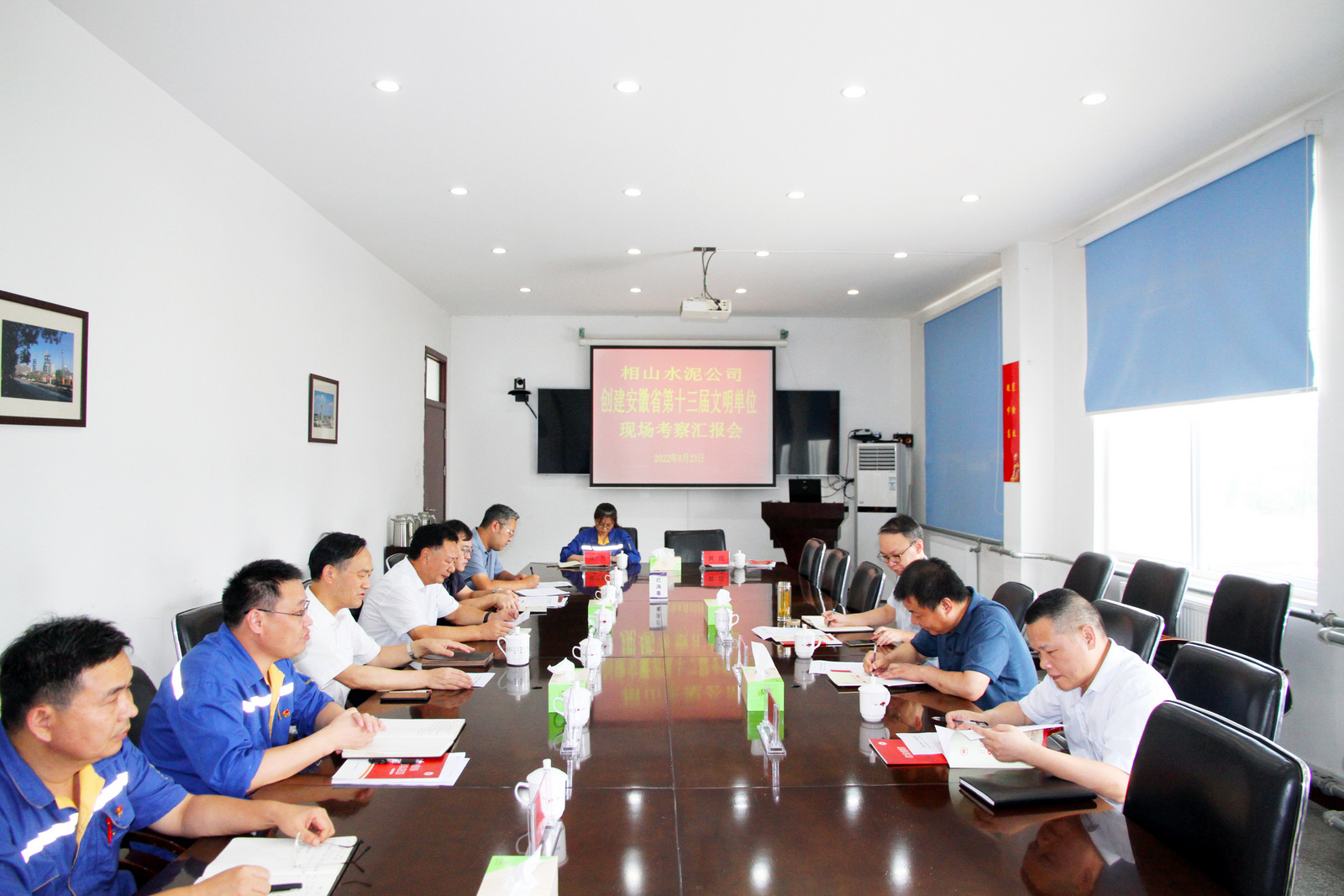 在相山水泥公司,王雪峰匯報了相山水泥近年來文明創建以來的工作進展情況。