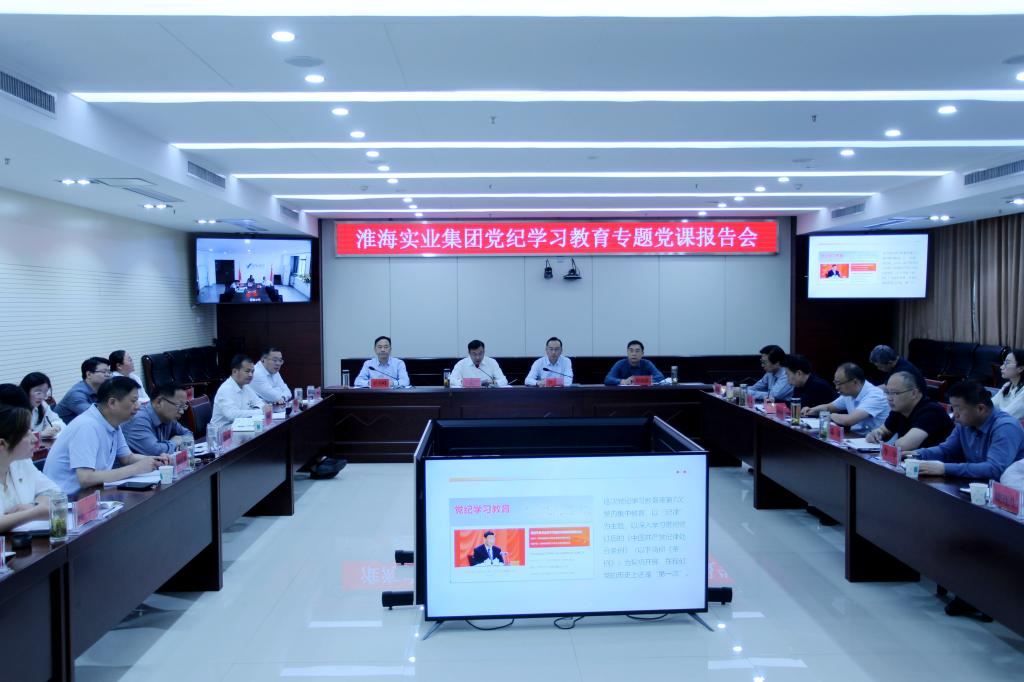 5月9日上午,淮海實業集團召開黨委理論學習中心組2024年第5次學習(擴大)會議暨專題黨課報告會,集團公司領導王振江、羅偉、王雪峰、翟建廷出席會議。